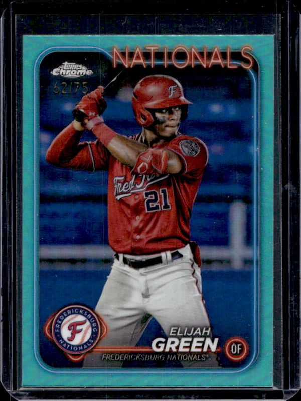 The Elijah Green 2024 Topps Pro Debut #PDC-66 Chrome - Aqua Refractor /75 card is 1 of 37 Elijah Green's card variations in the 2024 Topps Pro Debut set being tracked by Sports Card Investor, including Base, Fuchsia Foil /199, Sparkle Foil /175, Blue Foil /150, and Green Foil /99.