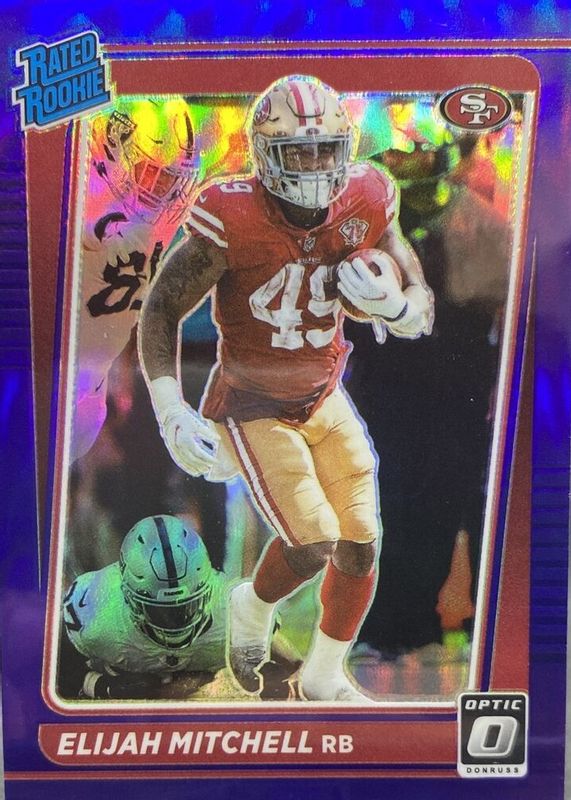 2021 Optic #291 Elijah Mitchell Rated Rookie Purple /50 San Francisco 49ers