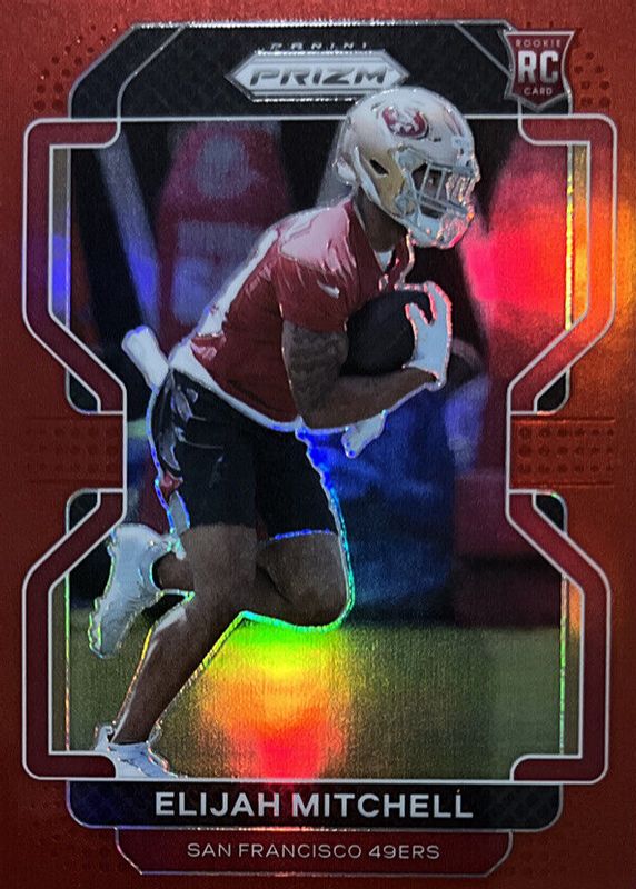 The Elijah Mitchell 2021 Prizm #399 Red /(SSP) Rookie card in Raw condition has not changed in price in the last 30 days and was last sold for $1.00 .