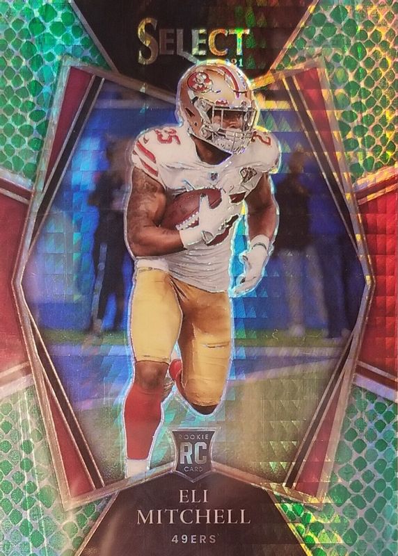 This card is 1 of 39 Elijah Mitchell's card variations in the 2021 Select set being tracked by Sports Card Investor, including Premier Level, Premier Level Black & Gold Die-Cut, Premier Level Disco, Premier Level Green & Yellow Die-Cut, and Premier Level Red & Blue Die-Cut.