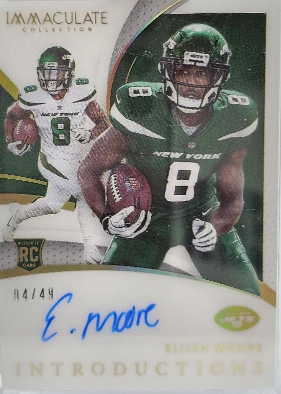 The Elijah Moore 2021 Immaculate #II-EM Immaculate Introductions Autographs (/49) Rookie card in Raw condition has not changed in price in the last 30 days and was last sold for $20.00 .