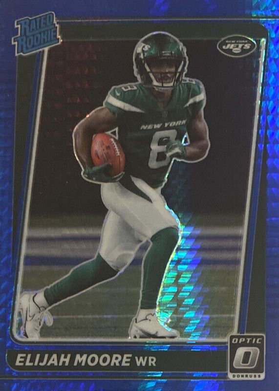 Elijah Moore - 2021 Donruss Optic - Blue Hyper Rated Rookie #216 - Jets