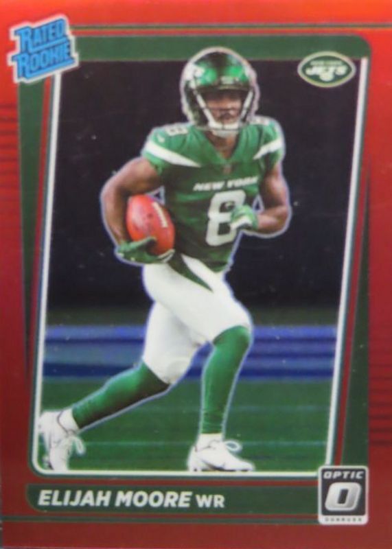 2021 Donruss Optic Elijah Moore Red Prizm Rated Rookie RC #44/99 #216 Jets C612