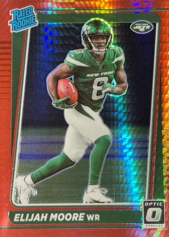 2021 Donruss Optic Elijah Moore RC Red Hyper Prizm #216 Rated Rookie Jets