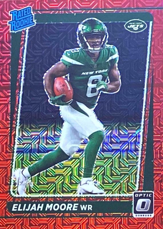 2021 Donruss Optic Elijah Moore Red Mojo Prizm Rated Rookie RC #216 Jets
