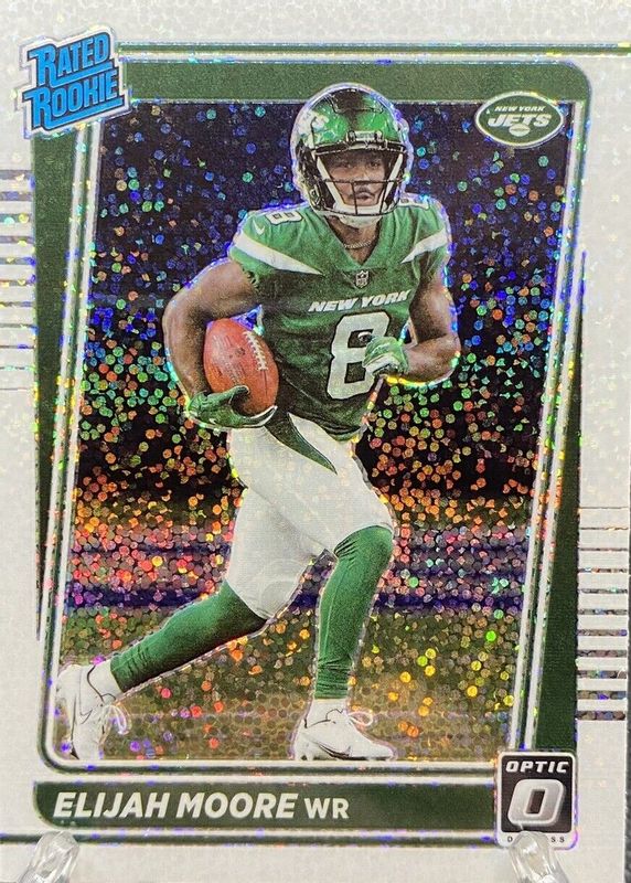 2021 Donruss Optic Elijah Moore White Sparkle Prizm Rated Rookie RC #216 Jets