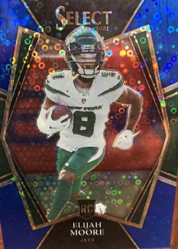 2021 Select Elijah Moore Blue Disco Prizm Concourse Rookie RC #13/25 Jets
