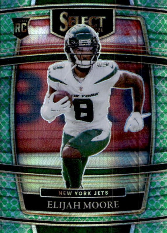 This card is 1 of 150 Elijah Moore's card variations in the 2021 Select set being tracked by Sports Card Investor, including Club Level, Concourse, Field Level, Premier Level, and Club Level Black & Gold Die-Cut.