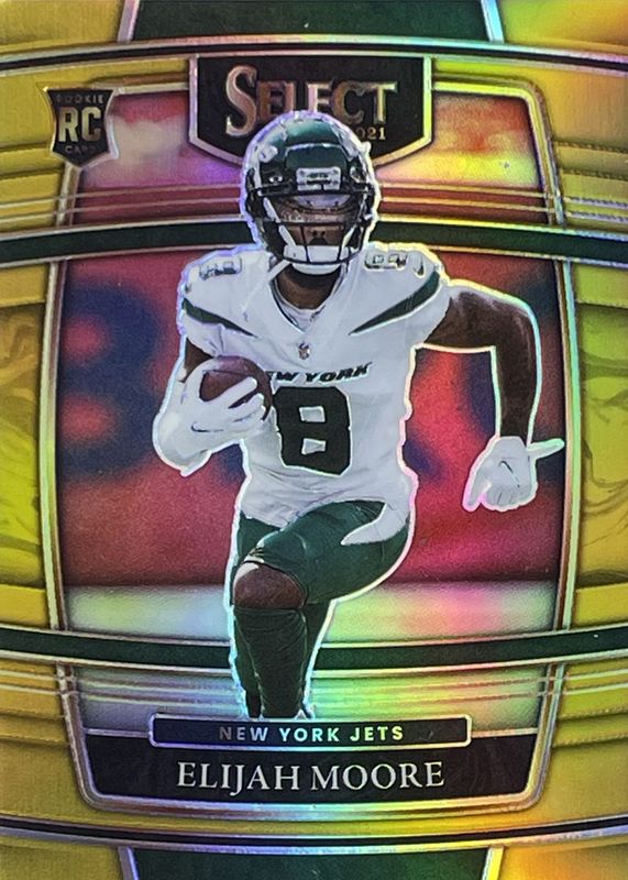 This card is 1 of 150 Elijah Moore's card variations in the 2021 Select set being tracked by Sports Card Investor, including Club Level, Concourse, Field Level, Premier Level, and Club Level Black & Gold Die-Cut.