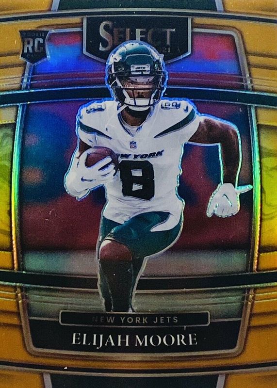 This card is 1 of 150 Elijah Moore's card variations in the 2021 Select set being tracked by Sports Card Investor, including Club Level, Concourse, Field Level, Premier Level, and Club Level Black & Gold Die-Cut.