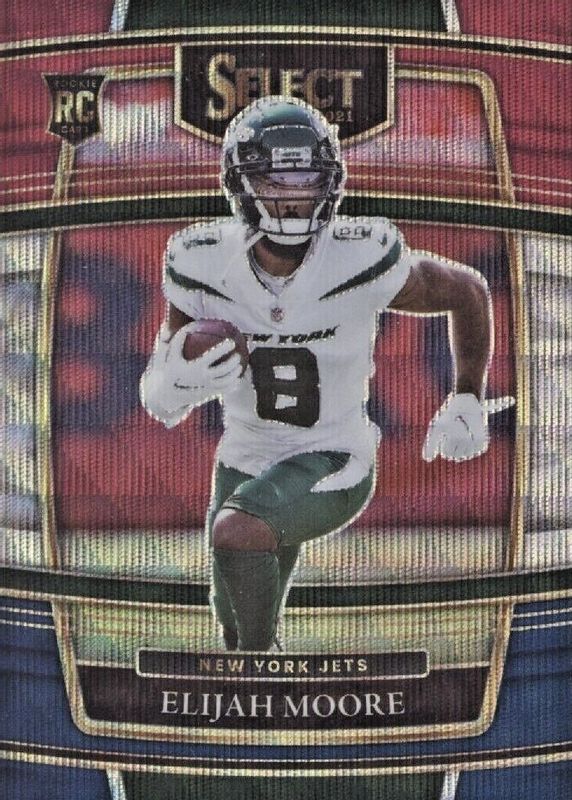 This card is 1 of 150 Elijah Moore's card variations in the 2021 Select set being tracked by Sports Card Investor, including Club Level, Concourse, Field Level, Premier Level, and Club Level Black & Gold Die-Cut.