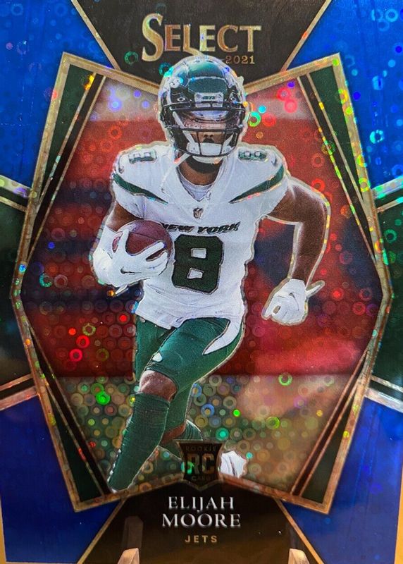 This card is 1 of 150 Elijah Moore's card variations in the 2021 Select set being tracked by Sports Card Investor, including Club Level, Concourse, Field Level, Premier Level, and Club Level Black & Gold Die-Cut.