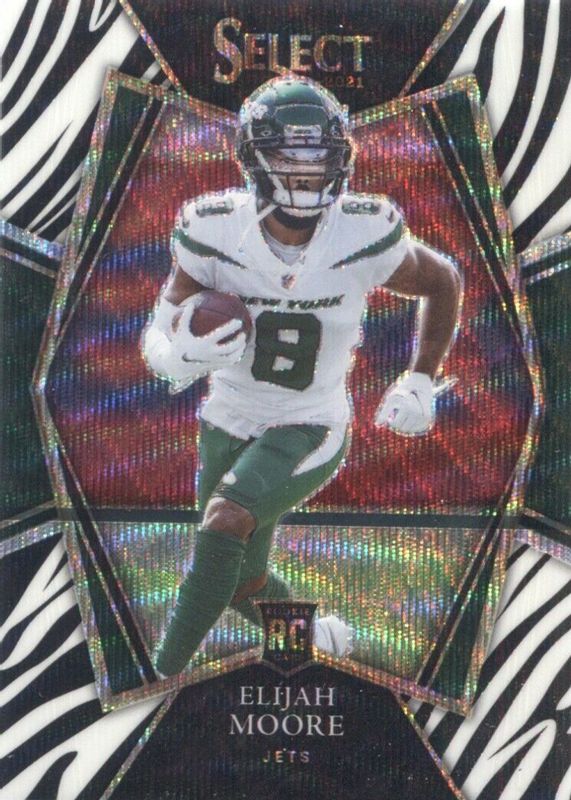 2021 New York Jets Select Elijah Moore Rookie Card SSP ZEBRA PRIZM!! No. 156