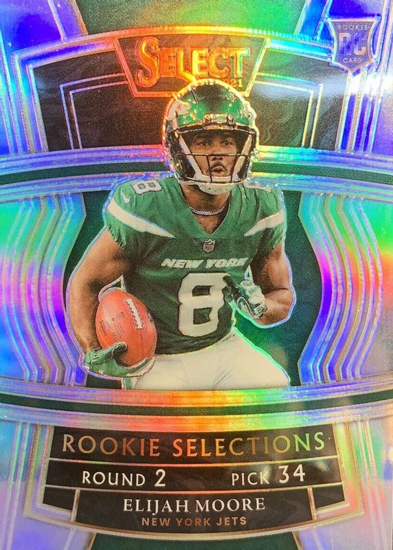 Elijah Moore 2021 Select Rookie Selections Silver Prizm Jets PWE