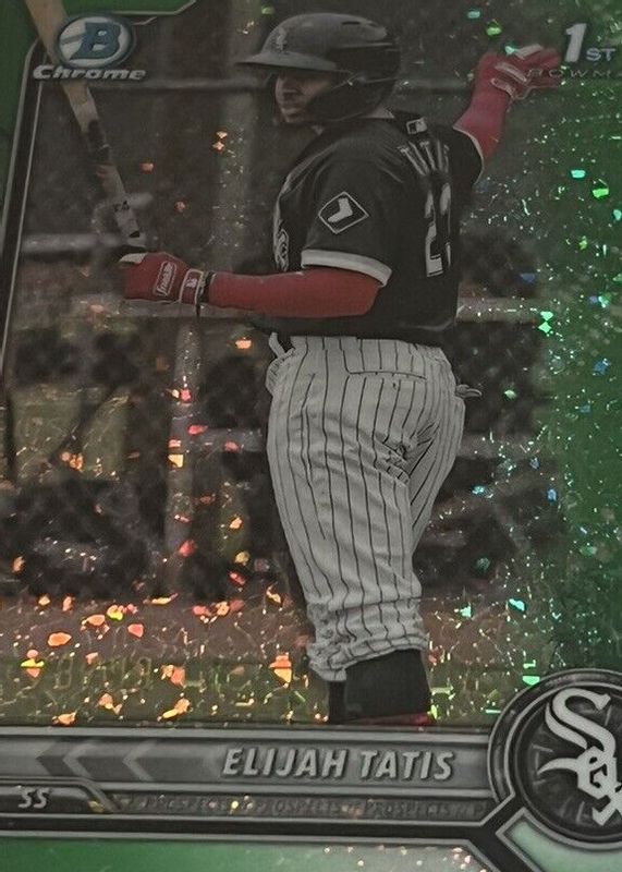 This card is 1 of 25 Elijah Tatis' card variations in the 2022 Bowman set being tracked by Sports Card Investor, including Chrome Prospects (1st), Chrome Prospects - Refractor /499 (1st), Chrome Prospects - Lava Refractor /399 (1st), Chrome Prospects - Speckle Refractor /299 (1st), and Chrome Prospects - Purple RayWave Refractor /250 (1st).