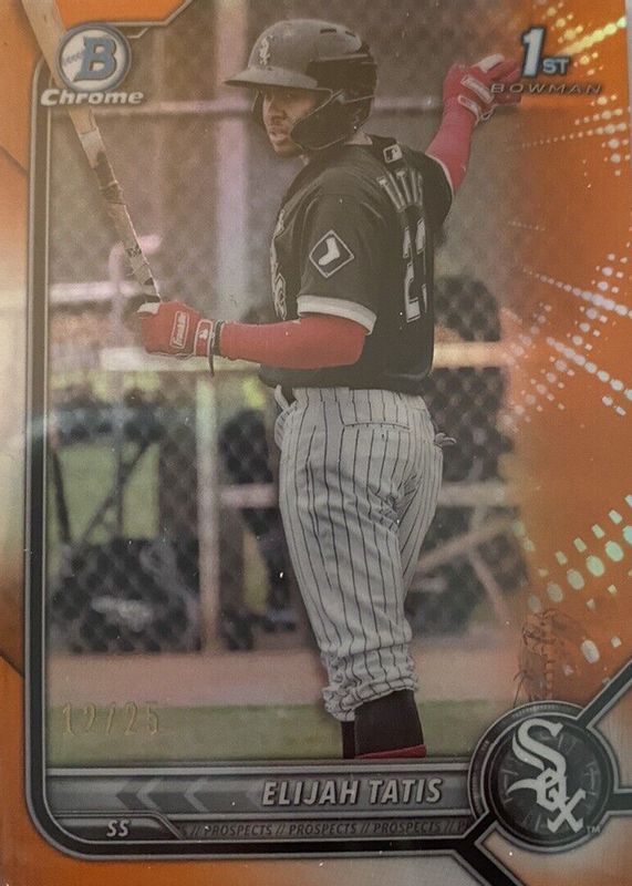 Best Prices Available For Sale of Elijah Tatis 2022 Bowman #BCP-23 Chrome Prospects - Orange Refractor /25 (1st)