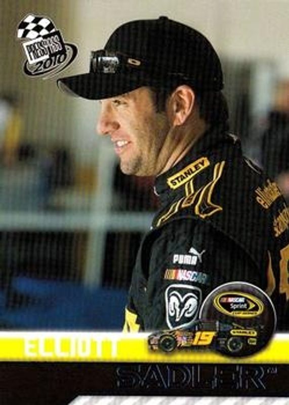 The Elliott Sadler 2010 Press Pass #28 Blue card is 1 of 19 Elliott Sadler's card variations in the 2010 Press Pass set being tracked by Sports Card Investor, including Base, Gold, Holofoil /100, Purple /25, and eBay Previews /5.