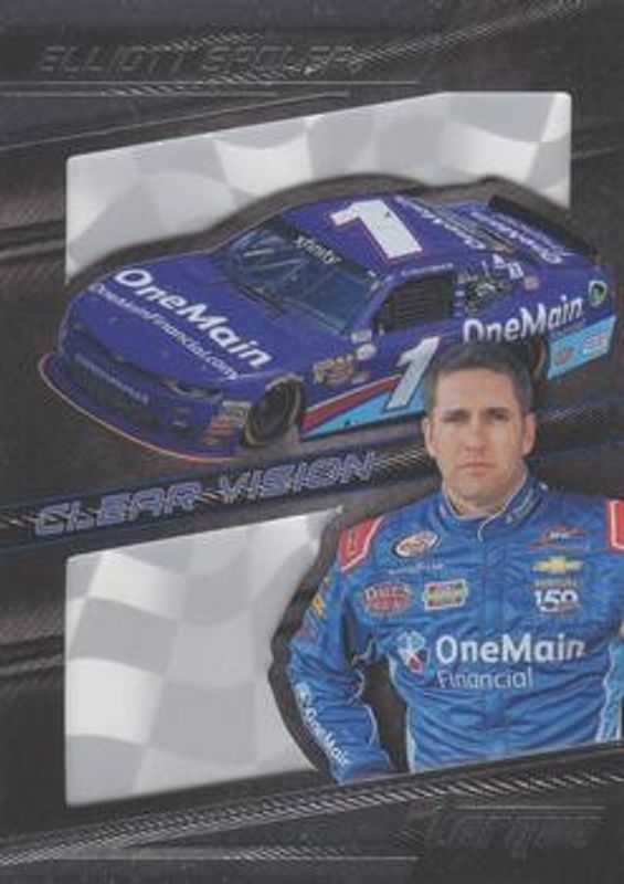 The Elliott Sadler 2017 Torque NASCAR #38 Clear Vision card is 1 of 33 Elliott Sadler's card variations in the 2017 Torque NASCAR set being tracked by Sports Card Investor, including Base, Gold, Blue /150, Red /100, and Artist Proof /75.