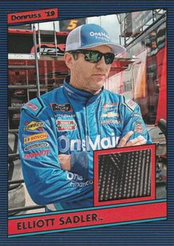 The Elliott Sadler 2019 Donruss NASCAR #86-ES 1986 Retro Relics card is 1 of 33 Elliott Sadler's card variations in the 2019 Donruss NASCAR set being tracked by Sports Card Investor, including #67 Silver, #143 Silver, #67 Gold /299, #67 Black /199, and #67 Gold Press Proof /99.