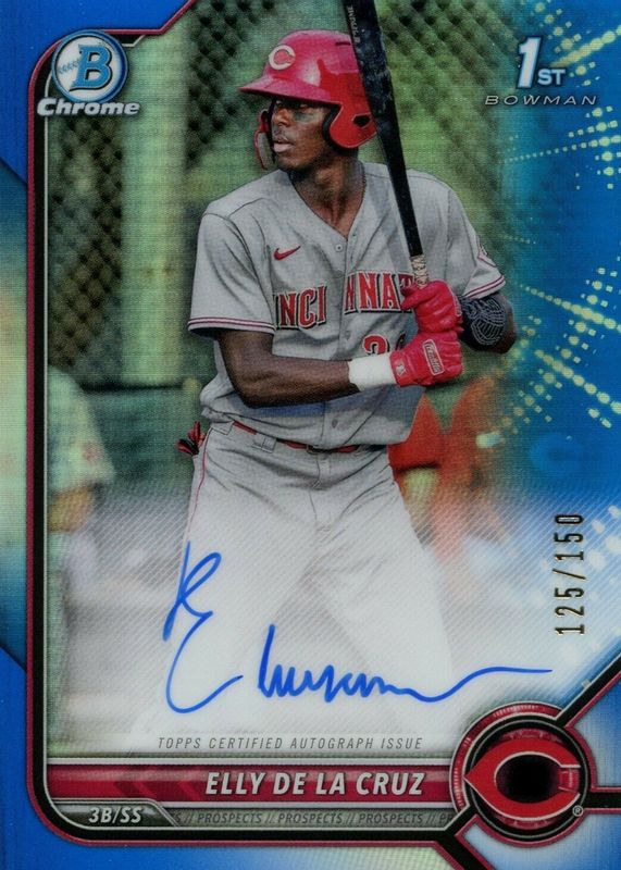 Best Prices Available For Sale of Elly De La Cruz 2022 Bowman #CPA-ED Chrome Prospect Auto - Blue Refractor /150 (1st)