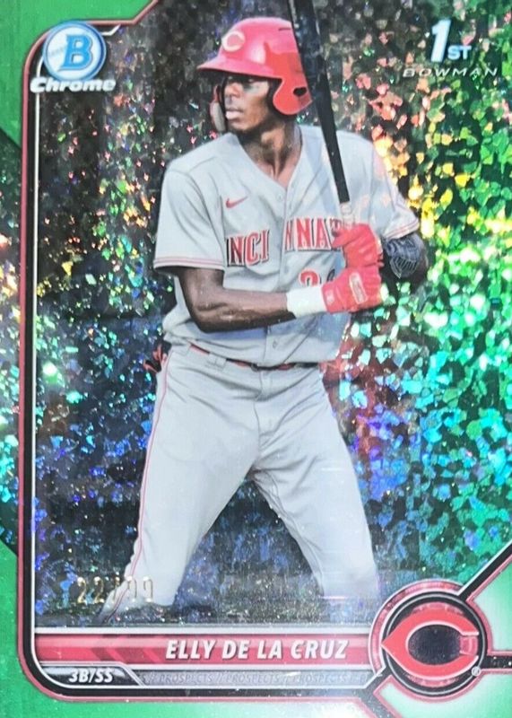 Auctions Ending Soon for Elly De La Cruz 2022 Bowman #BCP-50 Chrome Prospects - Green Mini-Diamond Refractor /99 (1st) RAW