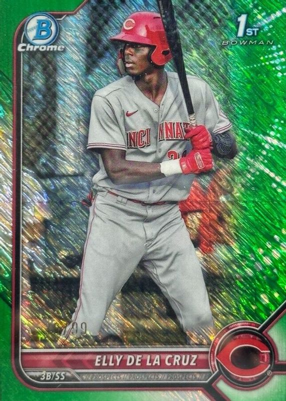 Best Prices Available For Sale of Elly De La Cruz 2022 Bowman #BCP-50 Chrome Prospects - Green Shimmer Refractor /99 (1st)