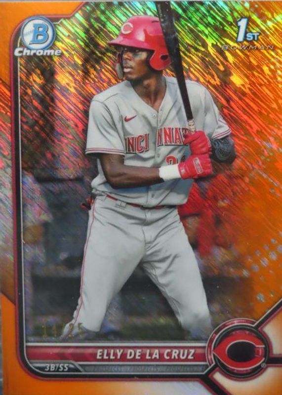Auctions Ending Soon for Elly De La Cruz 2022 Bowman #BCP-50 Chrome Prospects - Orange Shimmer Refractor /25 (1st) RAW