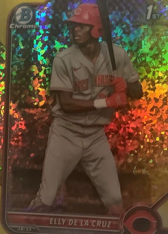 This card is 1 of 54 Elly De La Cruz's card variations in the 2022 Bowman set being tracked by Sports Card Investor, including Chrome Prospects (1st), Chrome Prospects - Refractor /499 (1st), Chrome Prospects - Lava Refractor /399 (1st), Chrome Prospects - Speckle Refractor /299 (1st), and Chrome Prospects - Purple RayWave Refractor /250 (1st).