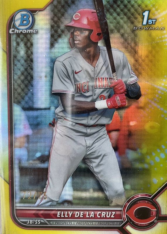 Best Prices Available For Sale of Elly De La Cruz 2022 Bowman #BCP-50 Chrome Prospects - Yellow Refractor /75 (1st)