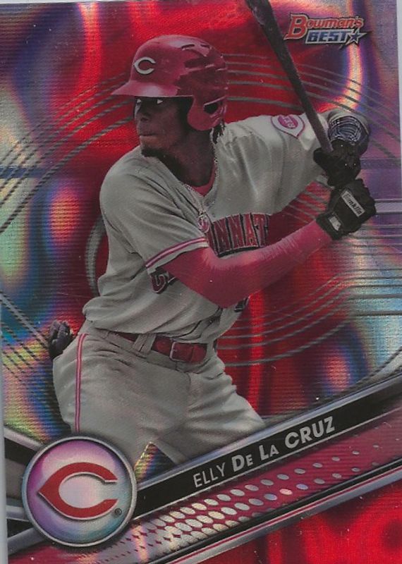 This card is 1 of 21 Elly De La Cruz's card variations in the 2022 Bowman's Best set being tracked by Sports Card Investor, including Top Prospects, Top Prospects - Atomic Refractor, Top Prospects - Refractor, Top Prospects - Mini-Diamond Refractor /299, and Top Prospects - Purple Refractor /250.