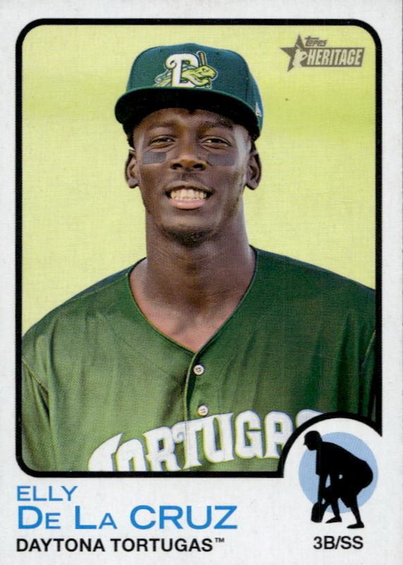 This card is 1 of 3 Elly De La Cruz's card variations in the 2022 Topps Heritage Minor League set being tracked by Sports Card Investor, including 1973 Topps Pack Cover, and Real One Autographs.