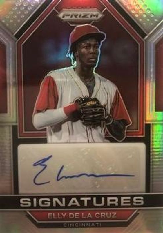 The Elly De La Cruz 2023 Prizm #SIG-EC Signatures - Silver card is 1 of 89 Elly De La Cruz's card variations in the 2023 Prizm set being tracked by Sports Card Investor, including Base, Blue Ice, Giraffe, Green Ice, and Hyper.