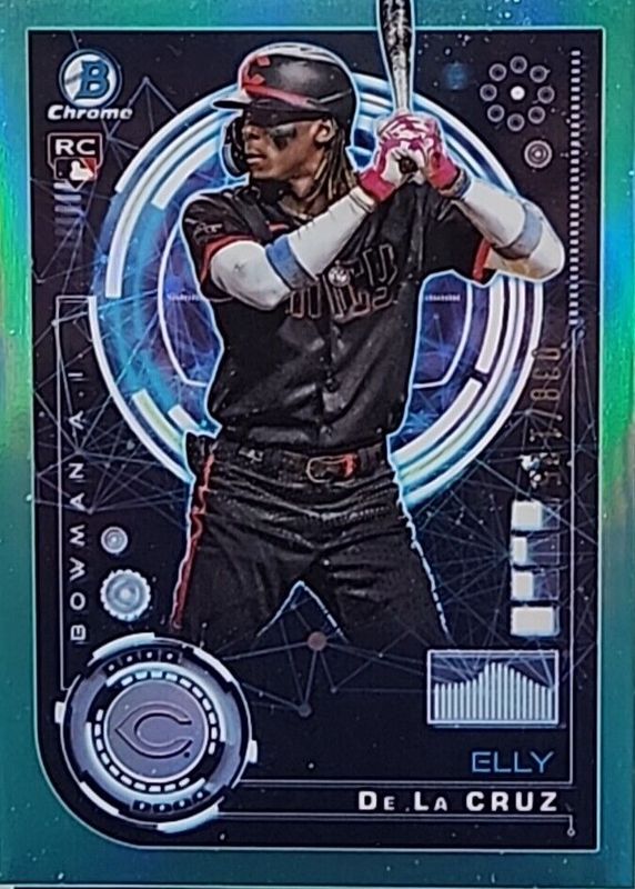 The Elly De La Cruz 2024 Bowman #BAI-1 Bowman AI - Aqua Refractor /125 Rookie card in Raw condition has not changed in price in the last 30 days and was last sold for $16.50 .