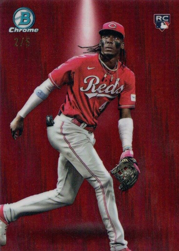 The Elly De La Cruz 2024 Bowman #BS-6 Bowman Spotlights - Red Refractor /5 Rookie card in Raw condition has not changed in price in the last 30 days and was last sold for $1,326.99 .