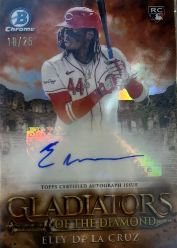 2024 Bowman Elly De La Cruz Gladiators of the Diamond Auto Orange Refractor /25
