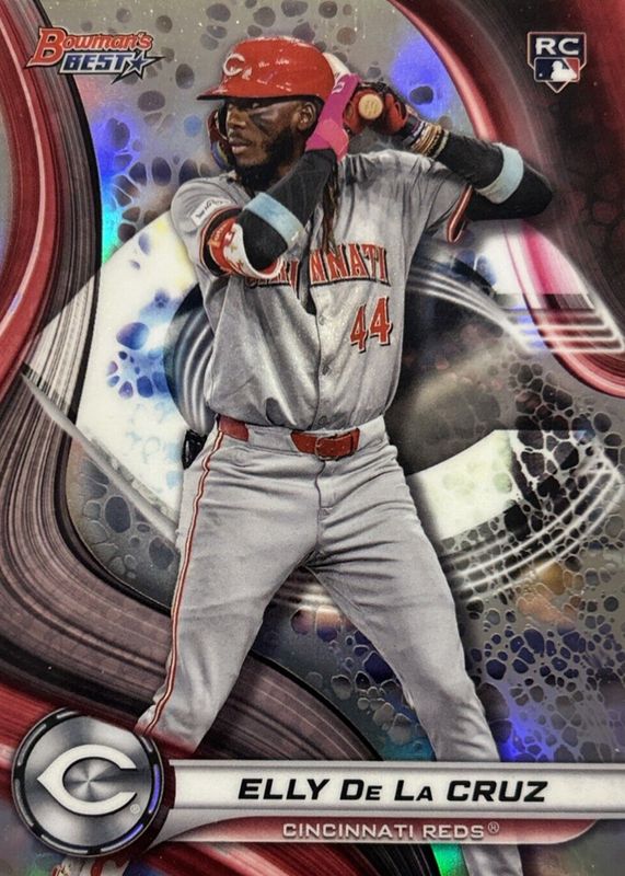 The Elly De La Cruz 2024 Bowman's Best #20 Refractor Rookie card in Raw condition has moved up $2.01 (+57.3%) in the last 30 days and was last sold for $5.51 .