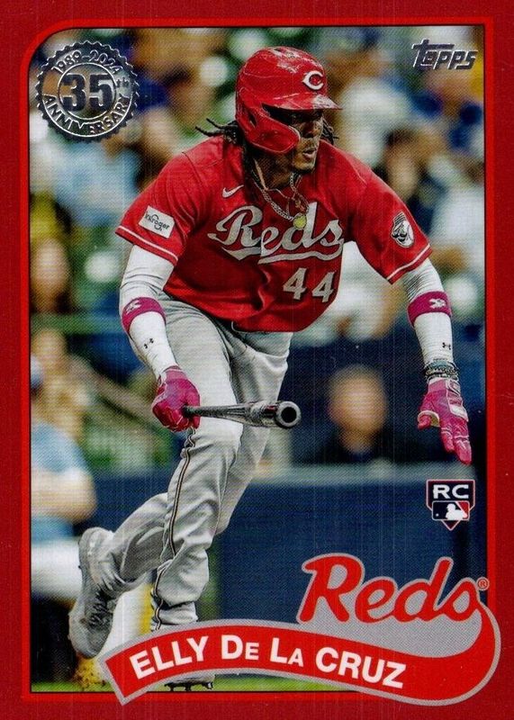 The Elly De La Cruz 2024 Topps #89B-69 1989 Topps - Red /10 (Series 1) Rookie card in Raw condition has not changed in price in the last 30 days and was last sold for $525.00 .