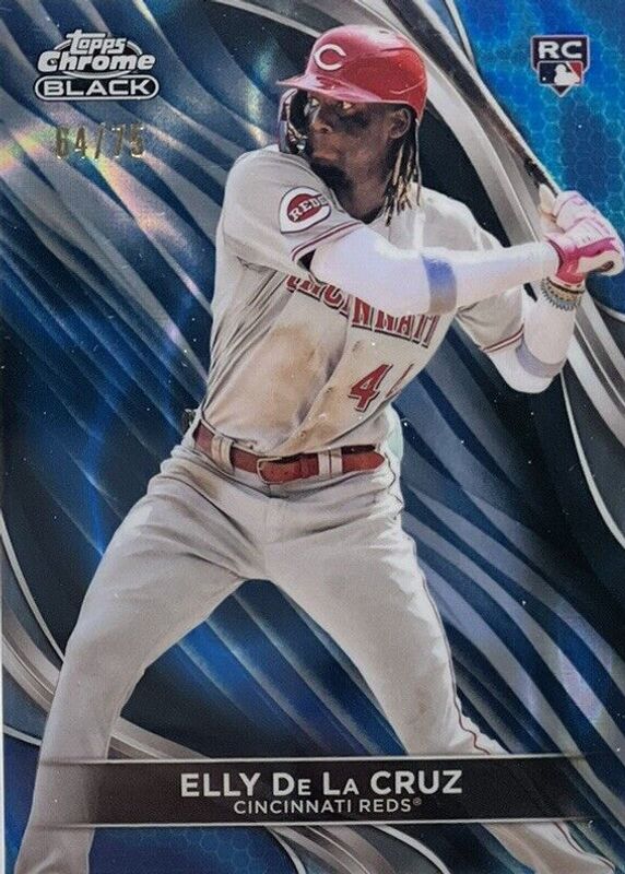 Best Prices Available For Sale of Elly De La Cruz 2024 Topps Chrome Black #17 Blue Lava Refractor /75