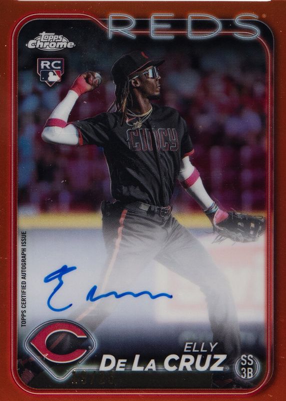 Auctions Ending Soon for Elly De La Cruz 2024 Topps Chrome #RA-EDLC Rookie Autographs - Orange Refractor /25 RAW