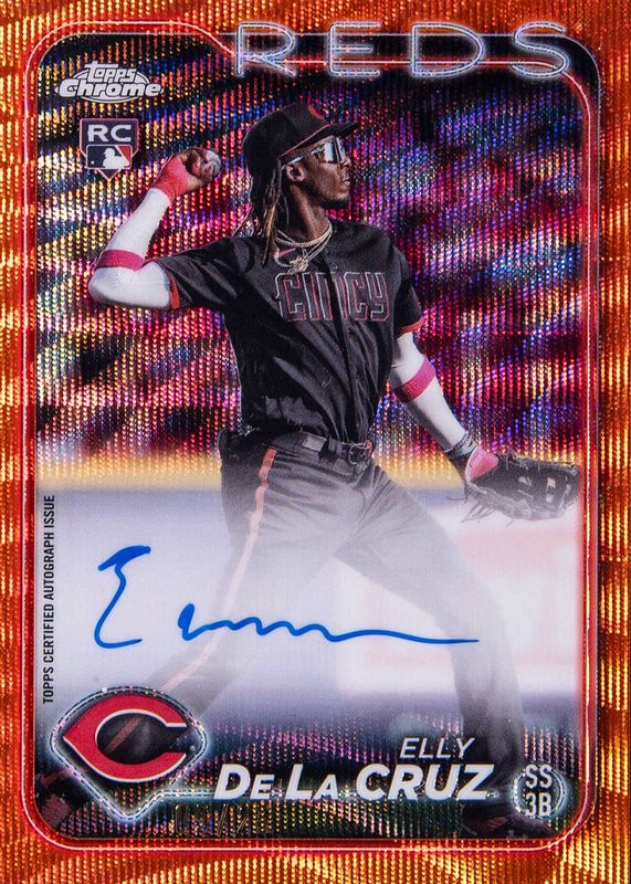 Auctions Ending Soon for Elly De La Cruz 2024 Topps Chrome #RA-EDLC Rookie Autographs - Orange Wave Refractor /25 RAW