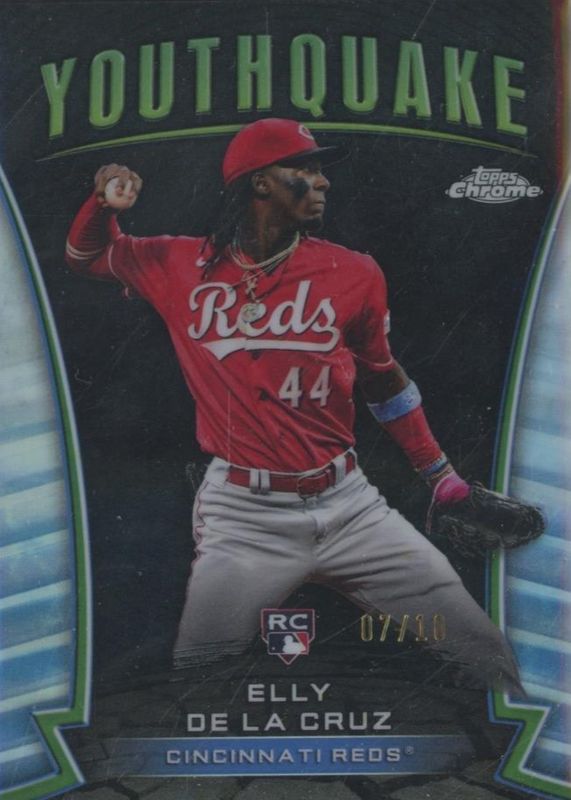 The Elly De La Cruz 2024 Topps Chrome #YQ-1 Youthquake - Black Refractor /10 Rookie card in Raw condition has not changed in price in the last 30 days and was last sold for $270.00 .