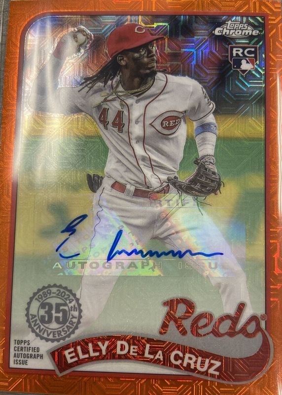 Auctions Ending Soon for Elly De La Cruz 2024 Topps Silver Pack #T89C-83 1989 Chrome Promo Autographs - Orange Refractor (Series 1) /25 Rookie RAW