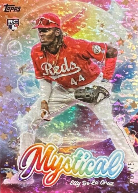 The Elly De La Cruz 2024 Topps Update #MYS-6 Mystical - Gold /75 Rookie card in Raw condition has not changed in price in the last 30 days and was last sold for $44.50 .