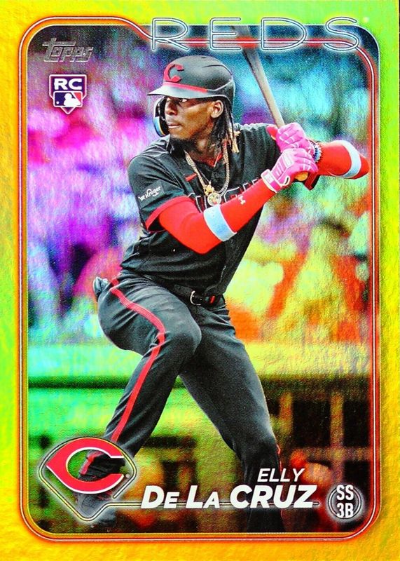2024 TOPPS ELLY DE LA CRUZ YELLOW FOIL HANGER EXCLUSIVE ROOKIE CARD # 141