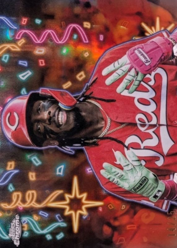 The Elly De La Cruz 2025 Topps Chrome Update #CT-7 Celebracion - Orange Refractor /25 card in Raw condition has moved down -$70.44 (-28.8%) in the last 30 days and was last sold for $174.50 .