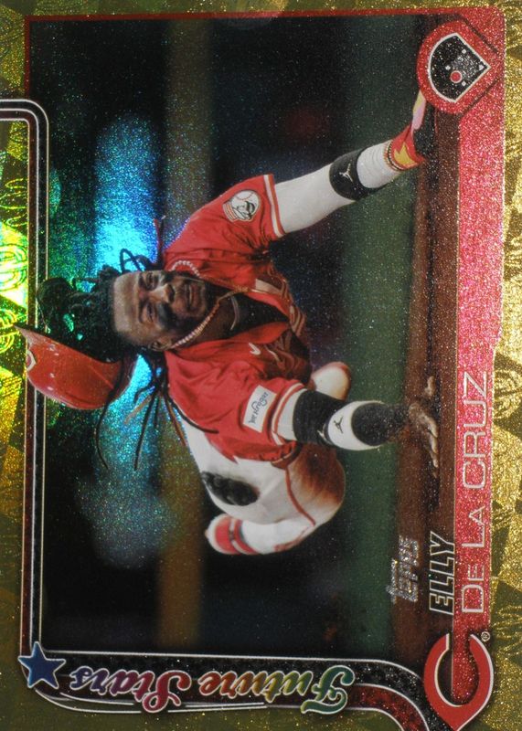 The Elly De La Cruz 2025 Topps #150 Spring Training Gold Foilboard /50 card in Raw condition has not changed in price in the last 30 days and was last sold for $25.00 .