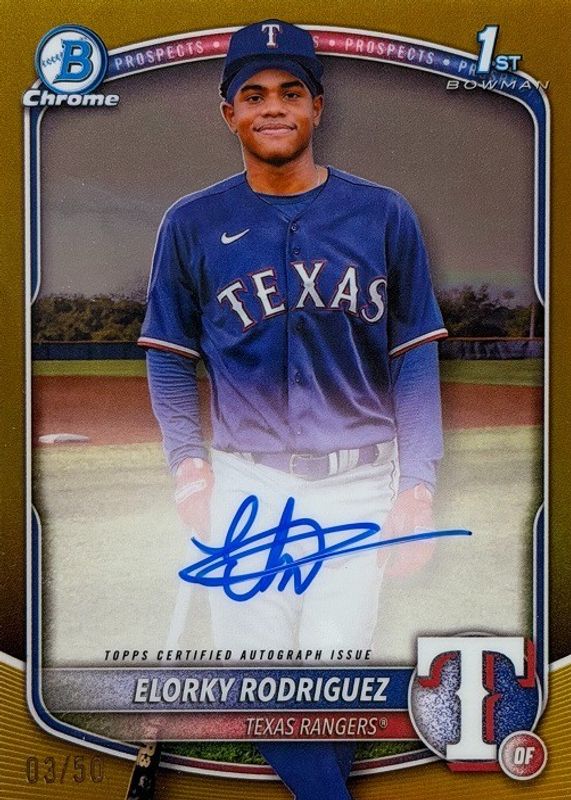 2025 Bowman Chrome Elorky Rodriguez Gold/50 Auto 1st Bowman Texas Rangers MLB