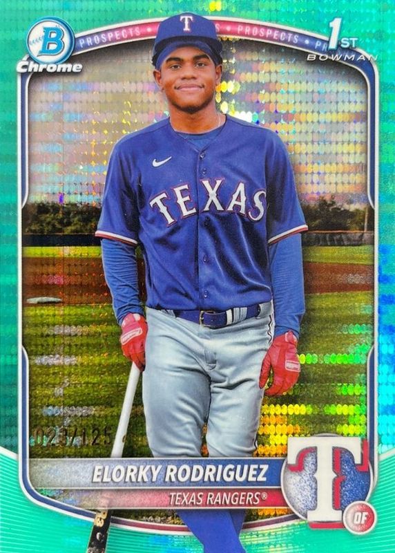 2025 Bowman Chrome Elorky Rodriguez Aqua Pulsar Refractor 1st Prospect #/125