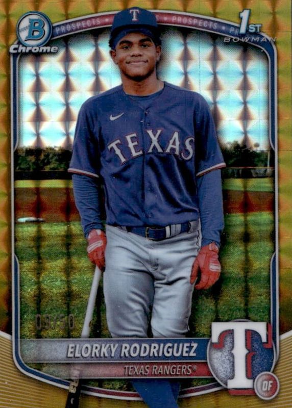 Elorky Rodriguez 2025 Bowman Chrome - 1st Gold Geometric /50 - Rangers #BCP-186