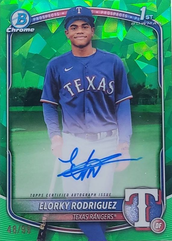 ELORKY RODRIGUEZ 2025 BOWMAN CHROME 1ST GREEN SAPPHIRE RANGERS AUTO /99 Q6156